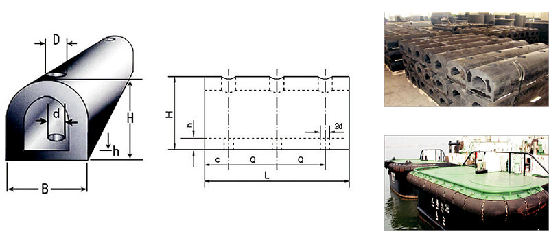 橡膠護(hù)舷是安裝在碼頭或船舶上,用以吸收船舶與碼頭或船舶之間在靠岸或系泊時(shí)的碰撞能量,保護(hù)船舶、碼頭免受損壞。根據(jù)橡膠護(hù)舷受力情況可分為剪切型、轉(zhuǎn)動(dòng)型和壓縮型等;根據(jù)護(hù)舷的結(jié)構(gòu),橡膠護(hù)舷又可分為半圓型(D)、超級(jí)拱型(SA)、圓筒型(CY)、超級(jí)鼓型(SC)護(hù)舷等等。